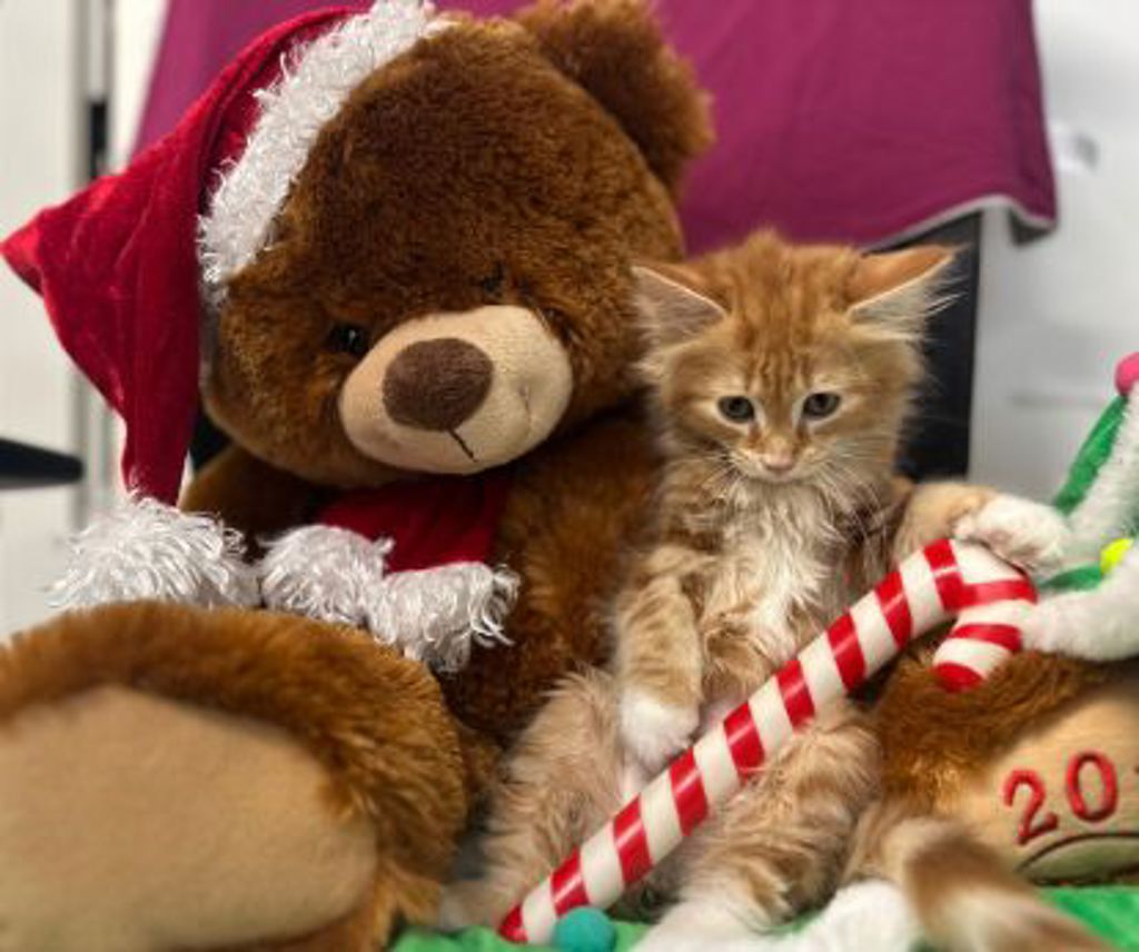 They enjoy soft blankets, wand toys, and curling up close when it's time to rest. Curious, kind, and full of wonder, this kitten is hoping Santa delivers them a forever home where they can grow, play, and be loved every season of the year.