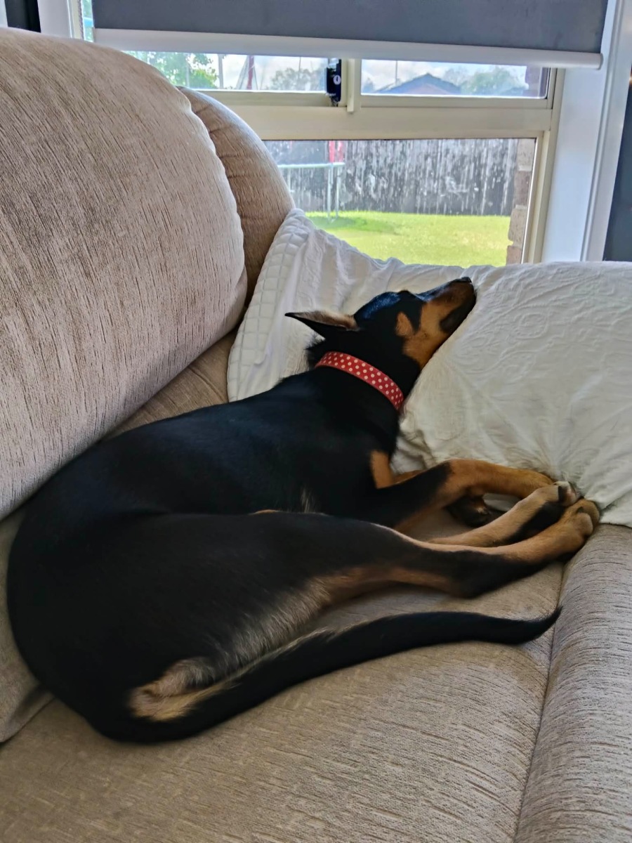 Despite her lively Kelpie energy, Rosie is equally content curling up on the couch for a well-deserved snooze. Her intelligence and eagerness to please make her a quick learner in various aspects, although she does need a bit more practice with her lead training. However, with Rosie's willingness to work alongside you, she'll be a star in no time.