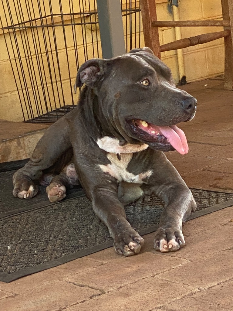 He's a large, handsome boy with an even larger personality. This sweet male Amstaff has a sturdy build, soulful eyes, and a calm confidence that makes him a joy to be around. He has a warm, expressive presence that draws people in and leaves a lasting impression on everyone he meets.