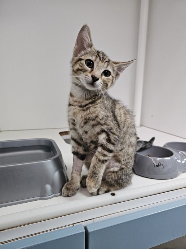 Hey there, I'm Debbie. I’m a friendly and affectionate kitten who would suit most homes! My playful paws are always ready to pounce on anything that moves. I love playing with wand toys and mysterious shadows on the wall! When I’m finished playing, I love nothing more than finding a warm lap to curl up in. I have perfected the art of the irresistible purr. It's like my secret weapon for getting all the cuddles and chin scratches I could ever want. Life's just one big, exciting string of moments, and I'm here to make every second count – whether I'm chasing my tail or sharing some purr-fectly quiet time with my favourite humans. So, if you're up for a bundle of furry fun and a lifetime of companionship, please consider adopting me!