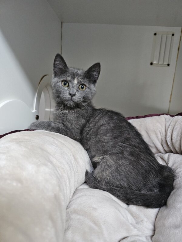 Hey there, I'm Inkblot. I’m a friendly and affectionate kitten who would suit most homes! My playful paws are always ready to pounce on anything that moves. I love playing with wand toys and mysterious shadows on the wall! When I’m finished playing, I love nothing more than finding a warm lap to curl up in. I have perfected the art of the irresistible purr. It's like my secret weapon for getting all the cuddles and chin scratches I could ever want. Life's just one big, exciting string of moments, and I'm here to make every second count – whether I'm chasing my tail or sharing some purr-fectly quiet time with my favourite humans. So, if you're up for a bundle of furry fun and a lifetime of companionship, please consider adopting me!