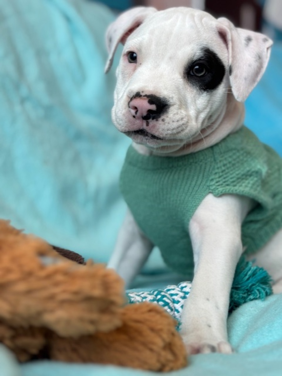 Darling Captain is a 9 week old English Staffy mix who is looking for his forever home, along with his siblings.