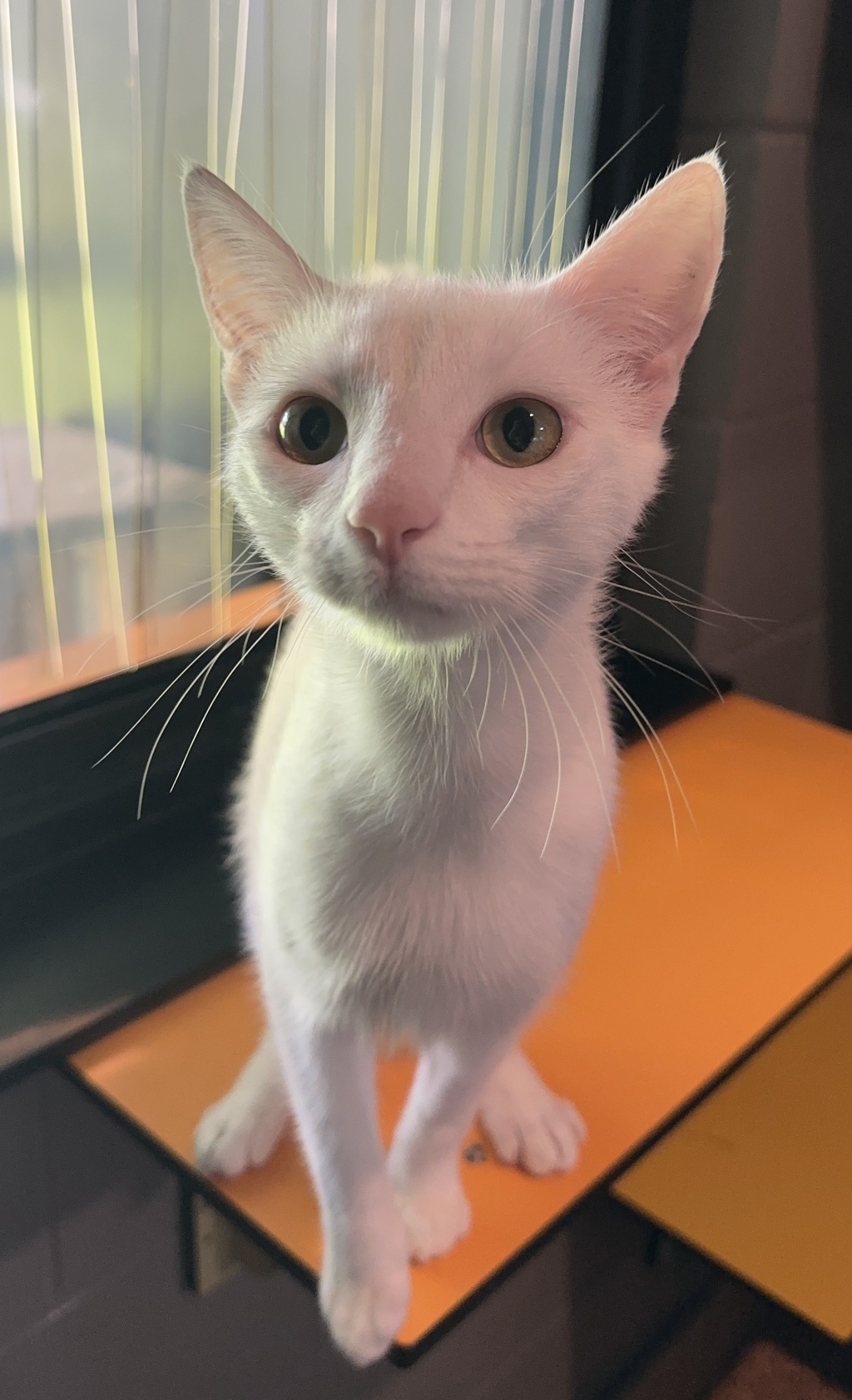 Ekko is a young adult white male cat with endless energy and a playful personality. This spirited boy loves to explore, chase toys, and turn everyday moments into fun adventures.