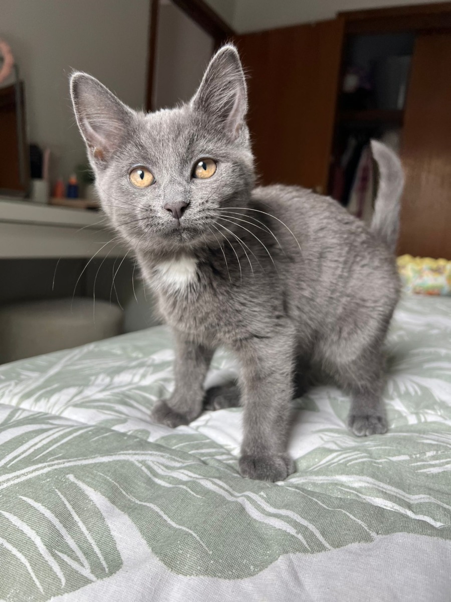 Leo is a charming little kitten with a personality that perfectly balances affection and a hint of reserve. His striking coat and bright, curious eyes draw you in, but it's his gentle nature that truly captures hearts. While Leo loves to snuggle and often seeks out quiet moments of affection, he can be a bit shy around new people and environments, taking his time to warm up.