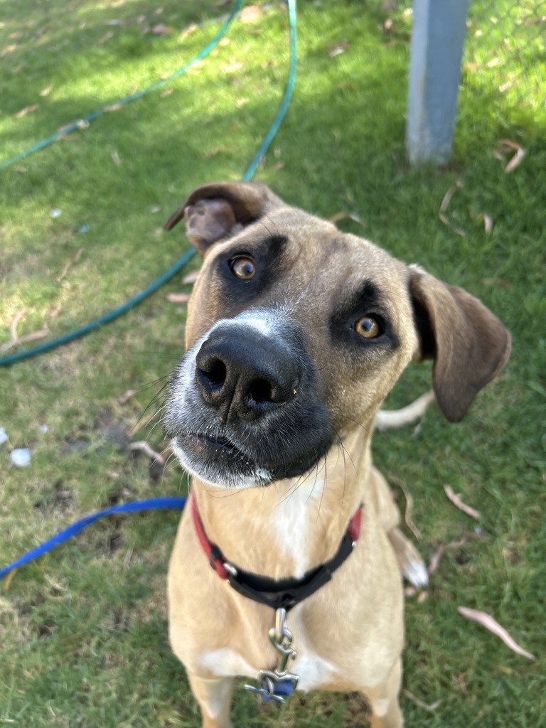 I'm a 2-year-old Mastiff-Labrador cross, professional good boy, and part-time sloth impersonator. When I relax, I go full flop-droopy face, long limbs, and maximum lounging. It's all part of my charm. I'm a bit goofy, very lovable, and always happy to make people smile.