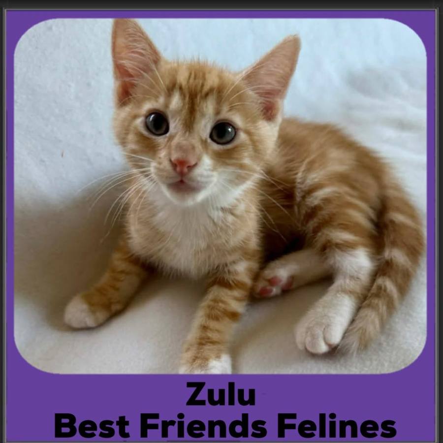 Zulu’s calm, sweet presence makes him an easy kitten to love and a beautiful companion for a home that appreciates a soft-natured, snuggly boy with a peaceful soul.