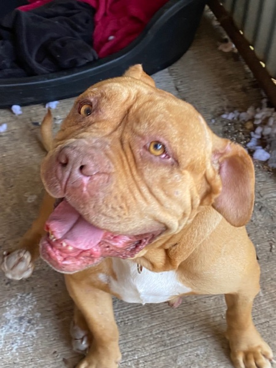 When out for a walk, you cant help but take your time, as every one you come across will want to stop & pat her big head, & ask about her....she is kind of unique in her looks & personality.
