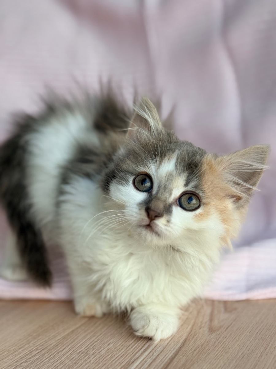 Initially, Morrigan might come across as a bit shy, but don't be fooled by her reserved demeanor. Once she's comfortable in her surroundings, she transforms into a lively and playful kitten, ready for any adventure that comes her way. Her captivating antics will keep you amused.