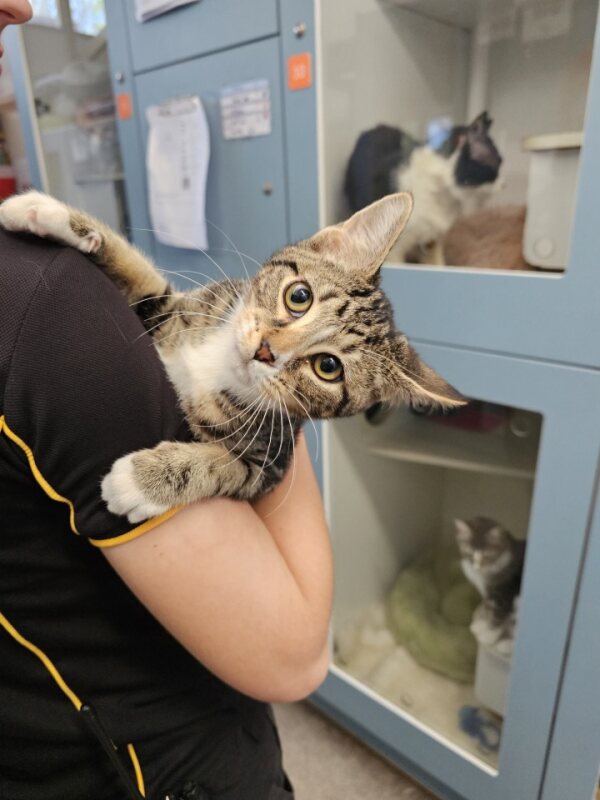 Hey there, I'm Gnocci. I’m a friendly and affectionate kitten who would suit most homes! My playful paws are always ready to pounce on anything that moves. I love playing with wand toys and mysterious shadows on the wall! When I’m finished playing, I love nothing more than finding a warm lap to curl up in. I have perfected the art of the irresistible purr. It's like my secret weapon for getting all the cuddles and chin scratches I could ever want. Life's just one big, exciting string of moments, and I'm here to make every second count – whether I'm chasing my tail or sharing some purr-fectly quiet time with my favourite humans. So, if you're up for a bundle of furry fun and a lifetime of companionship, please consider adopting me!