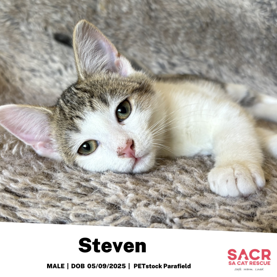 Steven is the kind of tabby-and-white boy who makes himself at home immediately - because honestly, why wouldnโt he? Friendly, confident and endlessly affectionate, Steven assumes everyone he meets is his new best friend. He loves a cuddle, enjoys a good play session, and has fully embraced his role as a professional snuggle buddy.