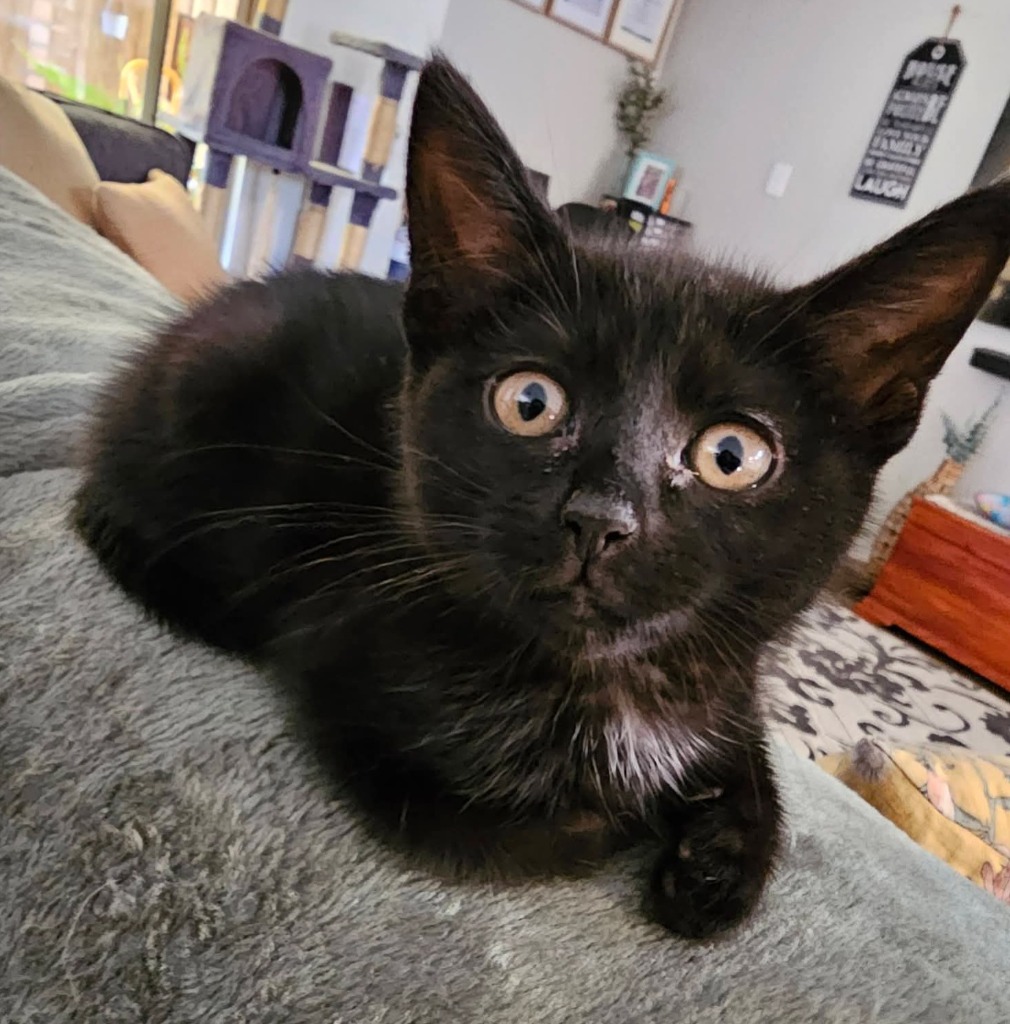 Curious, playful, and extra snuggly, Nyah loves exploring and playing just as much as she enjoys curling up for cuddles and purrs. A perfect mix of fun and affection, Nyah is a simply adorable kitten ready to find a loving home.