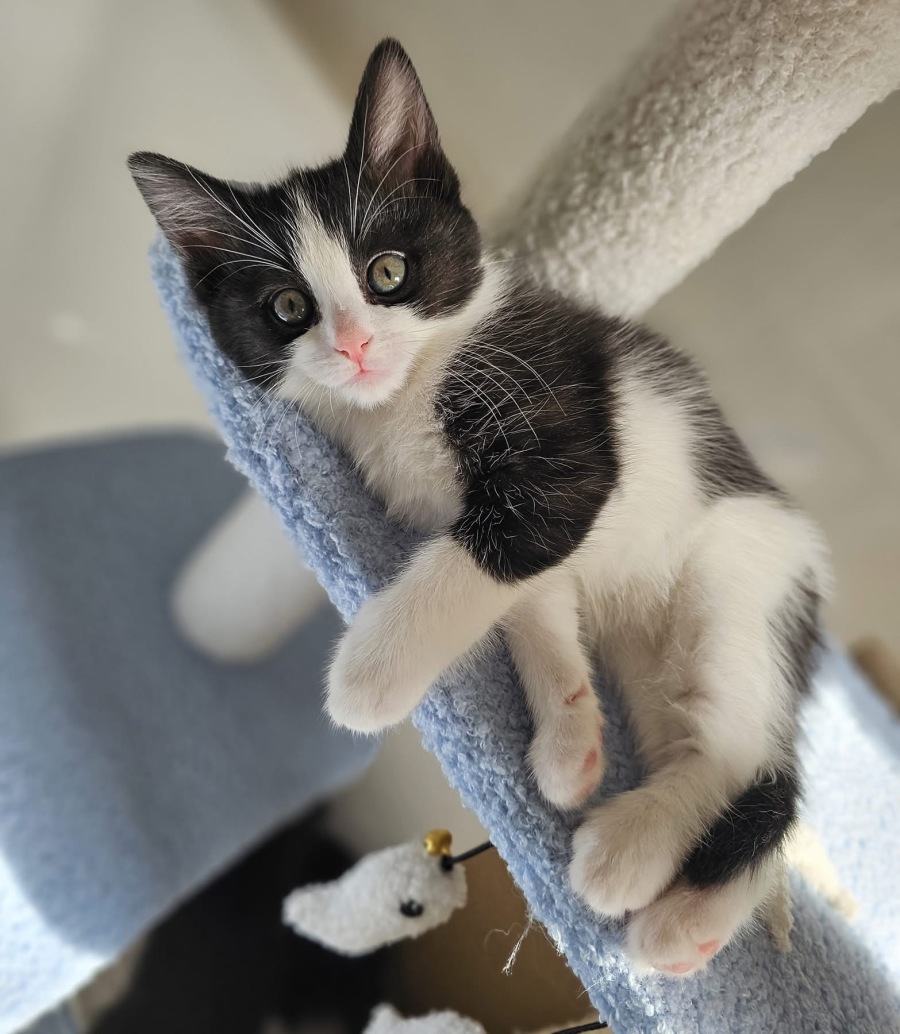 Yuna would thrive in any home but will be happiest with a feline sidekick, whether that’s her brother Eclipse 🌙, another kitten, or a resident cat brave enough to keep up with her antics 🖤🤍