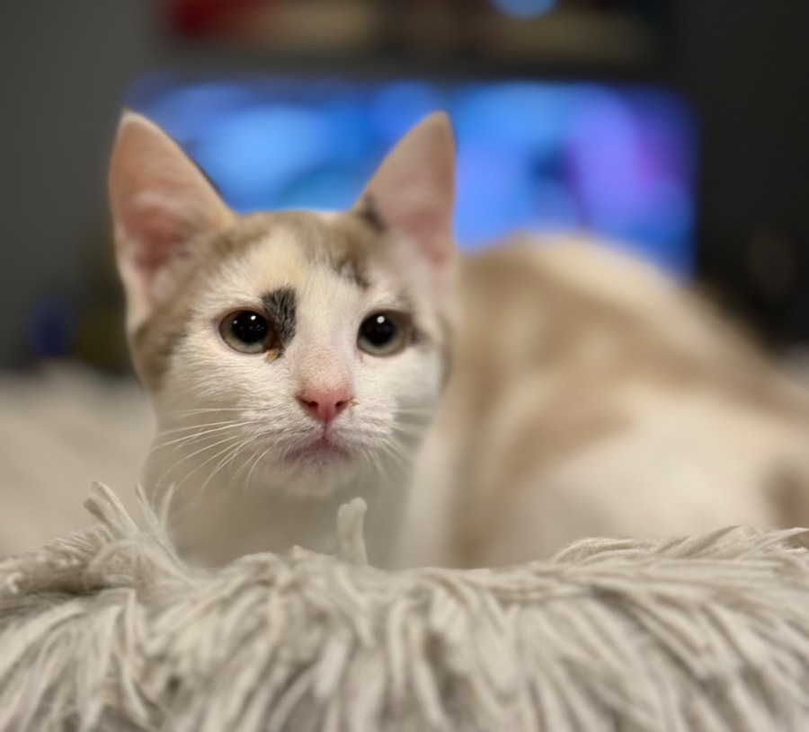 Her strictly indoor lifestyle guarantees she's a safe and cherished family member, eager to curl up beside you and fill your home with her gentle purrs and soft cuddles. Let Mia's enchanting presence fill your days with warmth and bring joy to your home.