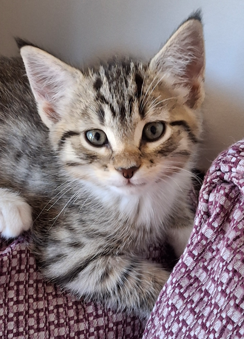 These three siblings are everything you'd hope for in young cats: playful, curious, people‑loving, and full of charm. Each one has their own spark, but they all share a love of exploring, climbing, chasing toys, and curling up with their humans. They thrive on attention and would be happiest in homes where they can be part of the daily action.