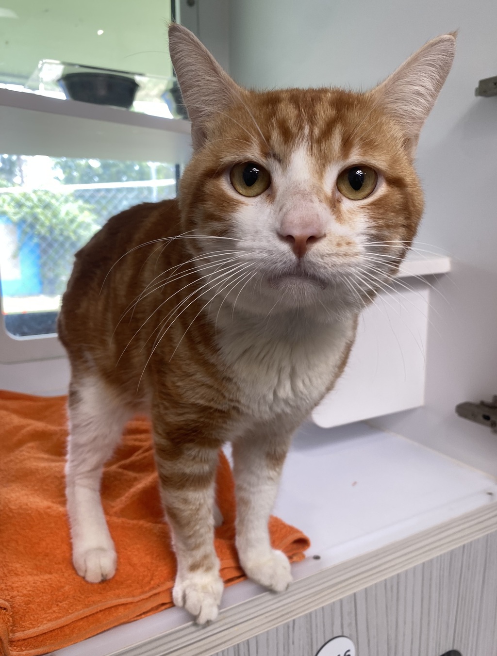 I'm a sweet affectionate kitty who's a little on the shy side. When my 'love match' takes me home their patience and kindness will go a long way to helping me settle in to my new abode. It would be best they start me in a launch room (a smaller room), as an itty bitty kitty like myself can get very overwhelmed in big spaces. My ideal family would be quiet and calm, so I am looking for a home without any little kids, who might be very scary for me!