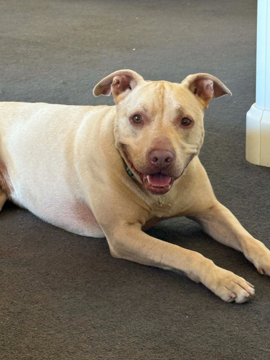 Topaz is a beautiful 7 year old American Staffy with the biggest heart and the sweetest personality. He has grown up in a loving family environment and truly thrives on human companionship.Topaz adores people and is wonderful with children, always greeting you in the most endearing way, proudly carrying something in his mouth, whether it’s a toy, tea towel, or whatever treasure he can find to say HI .