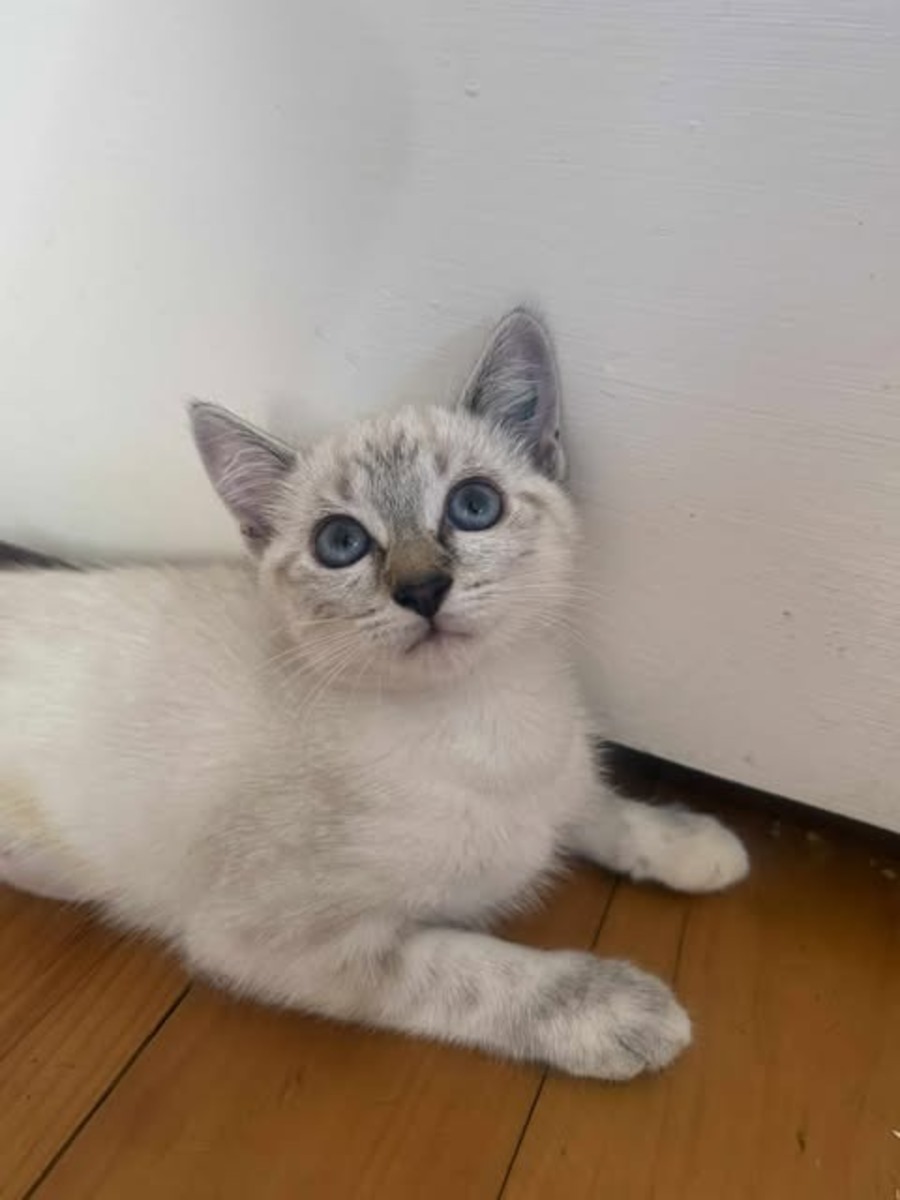 Meet Sweet Pea, the feline star who thrives as the center of attention. This charming kitty has a personality that shines as brightly as her eyes, and she's sure to fill your home with love and lively conversation. Sweet Pea is incredibly affectionate, constantly seeking pats and cuddles, and will make sure her delightful voice is heard when she wants your attention.