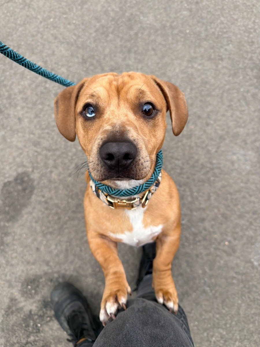 He's selective when it comes to doggy pals and is happiest with those who match his energy. He's would do well with kids and extremely people-focused, earning him the nickname "Velcro dog" since he loves being close to those he cares about.