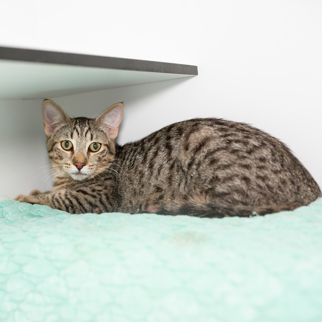 Huck is a young male tabby with a gentle nature and a sweet personality. He can be a little shy when first meeting new people, but with patience and a calm approach, he quickly starts to feel safe. Once Huck warms up, he shows what a good boy he truly is-affectionate, curious, and happy to spend time with his people. He's looking for a kind, understanding home where he can build confidence at his own pace and blossom into a loving companion.