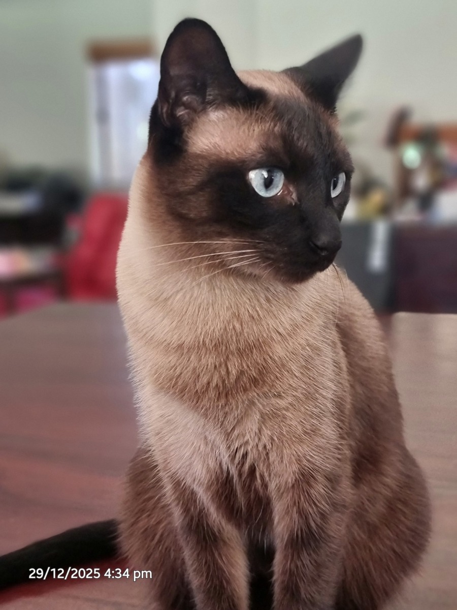 Maisy is an absolutely stunning Tonkinese x domestic shorthair, with striking blue eyes full of curiosity and intelligence. She is playful, athletic and thrives on interaction.