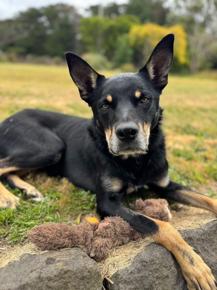 Hi! My name is Boof. I’m a 3-year-old male Black & Tan Kelpie, and I’m a calm, loving boy with a heart of gold. My sleek black coat with tan markings makes me as handsome as I am affectionate!