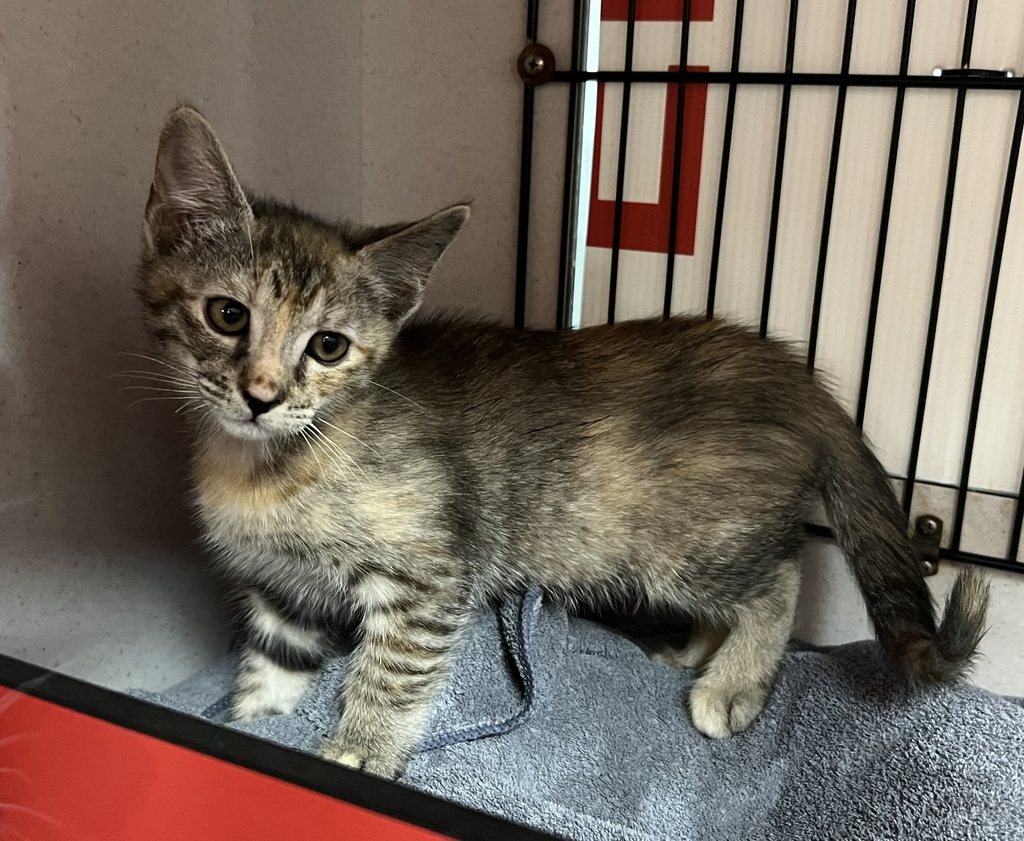 Maggie is a beautiful little kitten with a shy and timid nature. She may take a little time to feel comfortable in her new surroundings, but with patience and love, Maggie will blossom into the sweetest companion. Once she learns to trust, you'll see her affectionate side shine through, and she'll reward you with gentle purrs and quiet cuddles.