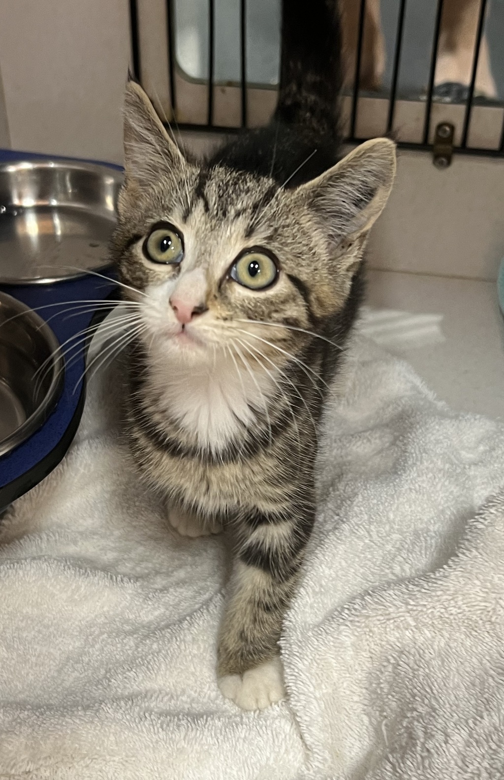 Enchantress is a graceful little kitten with a gentle, reserved nature. She's a touch shy at first, but warms up quickly with kindness and attention. Once she feels safe, her sweet personality shines through, and she'll happily share quiet cuddles and loving moments.