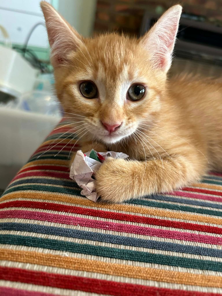 She has gorgeous little tiger stripes and a fun, lively nature that keeps everyone entertained. Pickle is confident, curious, and knows exactly what she wants — usually the next game or adventure.