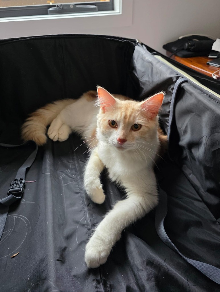 Atlas is a truly magnificent cat. He is a big boy with a long, feathered tail and an even bigger heart. His coat is a very unusual colour with a mix of white, fading to cream, with a touch of champagne tabby. He is unique in every aspect.