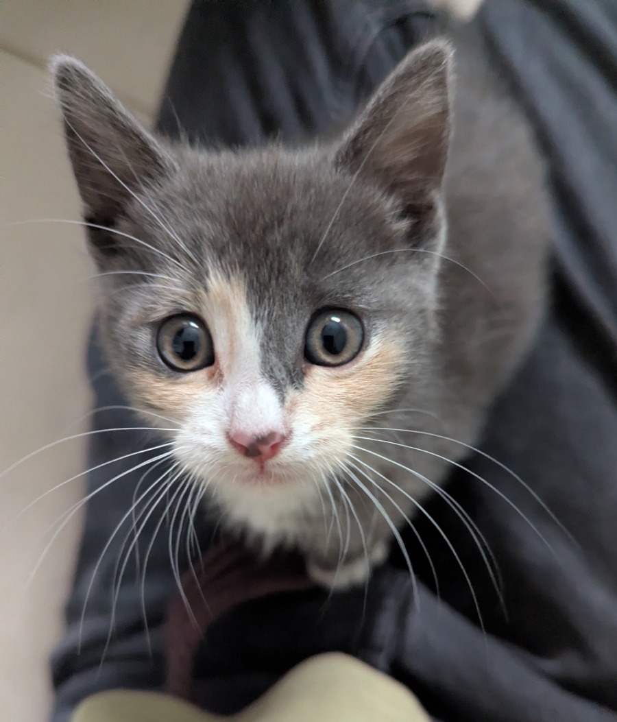 Tansy is a gorgeous dilute calico kitten of around 11 weeks old with the sweetest nature and the loudest purr. Found all alone in a park, crying for help, Tansy has taken her rough start in stride and blossomed into a confident, affectionate and people-loving little kitten.