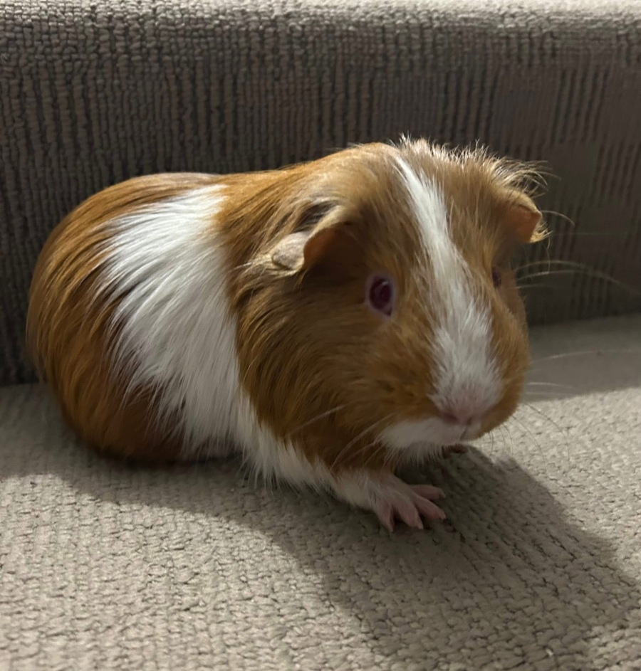 Tuxie is 1 year and 2 months of age with ginger, lilac and white colourings. He has striking strawberry eyes and is looking for a new best friend. He is an entire male piggie so needs to be paired with another male or a desexed female. He has been wellness checked and is ready to go to his new forever home.