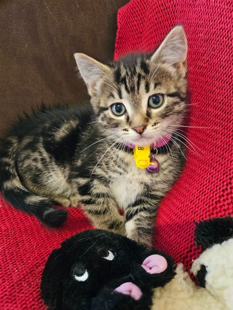 Hela is adventurous, playful, social and friendly. She loves to be around people and other animals and to be part of whatever is happening. Hela loves to be up high on her castle to sunbake and watch the world through her window, and to play with her toys. ❤️