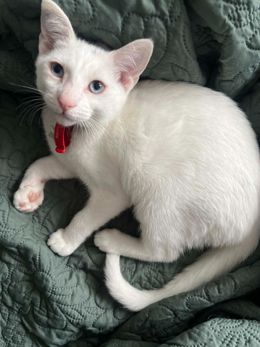 Meet Raymond, the handsome & charismatic little man with blue eyes and all-white coat (minus 2 grey dots on his head). With an endless supply of energy and curiosity, Raymond is always up for a game of chase or a friendly wrestle, making him the purr-fect companion for a household with another playful cat. His enthusiasm for playtime knows no bounds, and having a feline friend to share his antics with is just what Raymond needs to thrive.