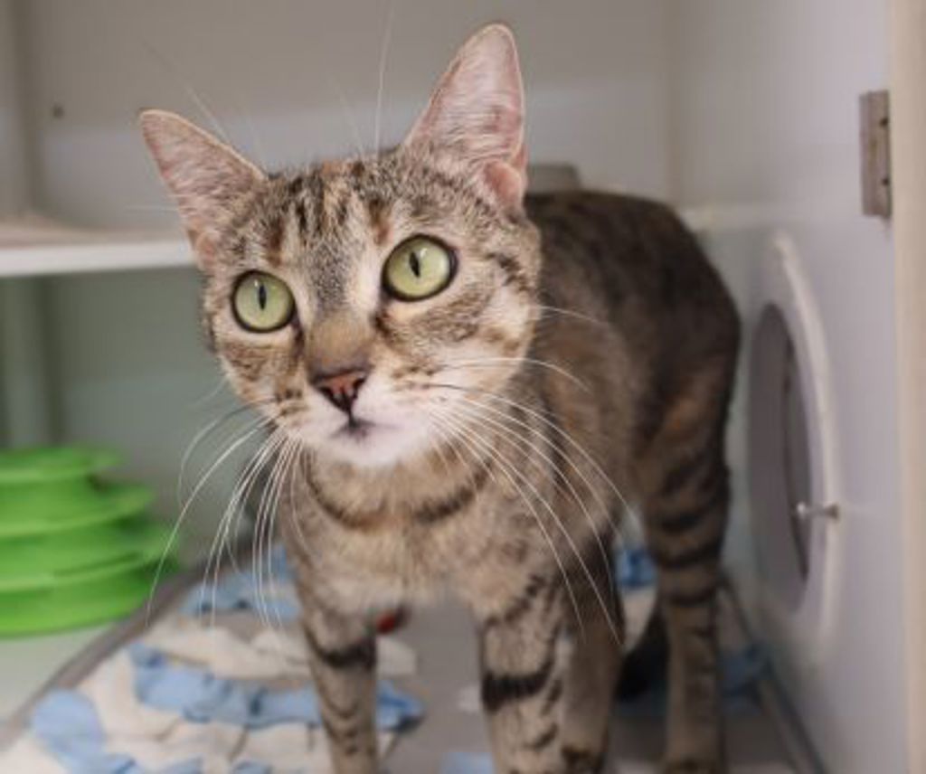 She is a small but mighty tabby girl with piercing green eyes that almost put you in a trance the moment she looks your way. One glance and you're done for. She knows it too. BeeBo has a gentle, curious nature and loves to be right where the action is, especially if that action involves birds outside the window. She could watch them for hours, fully focused, tail gently swaying as she plans her imaginary adventures.