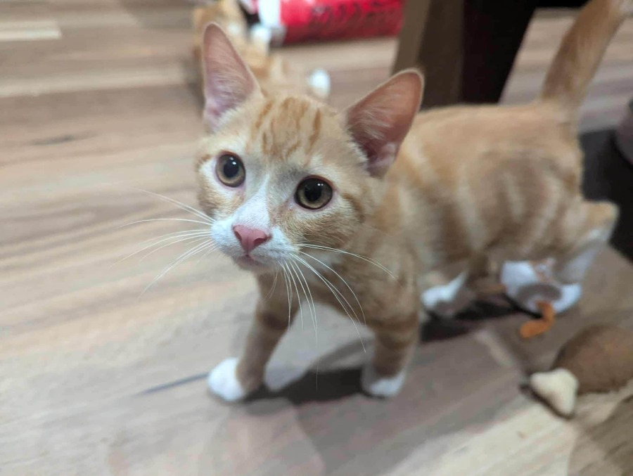 Chester was surrendered to us with his mum and siblings. They had been living rough on the street - and are very happy to be indoors with people! He is now a well adjusted, snuggly kitten who is loving human company. Chester would love nothing more than a forever family to snuggle up with and continue growing into the affectionate companion he already is. Ideally, we’d love for him to find a home with a kitty friend - perhaps one of his siblings, Coral or Cassie! 🤍