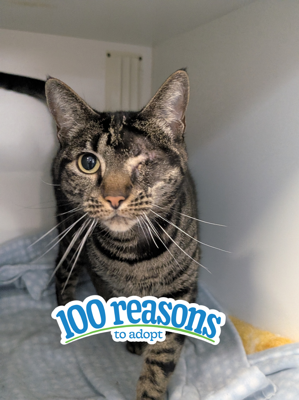I'm a tabby girl with fabulous stripes, one impressive eye, and plenty of personality to make up for anything I might be "missing." I came in through the council, and my original people never came forward-but that's okay. I've decided this time I'm upgrading straight to my forever home.