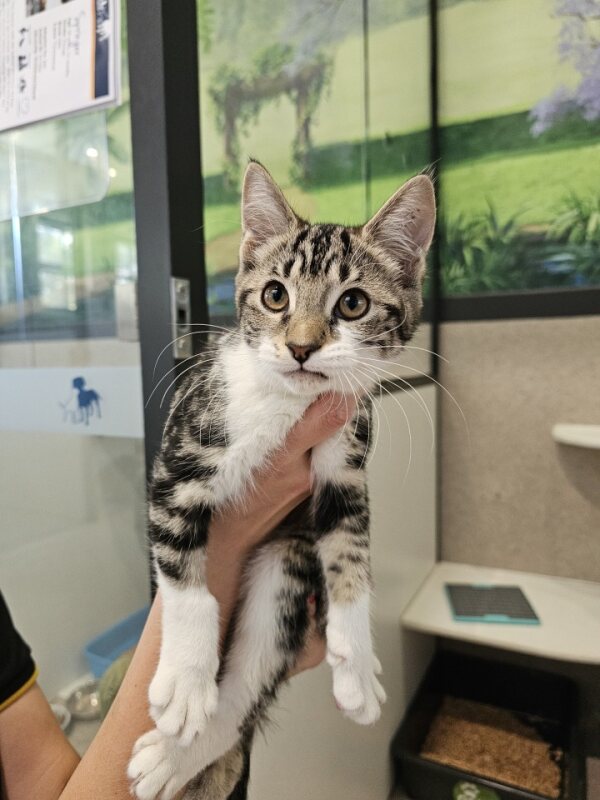 Hey there, I'm Noctis. I’m a friendly and affectionate kitten who would suit most homes! My playful paws are always ready to pounce on anything that moves. I love playing with wand toys and mysterious shadows on the wall! When I’m finished playing, I love nothing more than finding a warm lap to curl up in. I have perfected the art of the irresistible purr. It's like my secret weapon for getting all the cuddles and chin scratches I could ever want. Life's just one big, exciting string of moments, and I'm here to make every second count – whether I'm chasing my tail or sharing some purr-fectly quiet time with my favourite humans. So, if you're up for a bundle of furry fun and a lifetime of companionship, please consider adopting me!