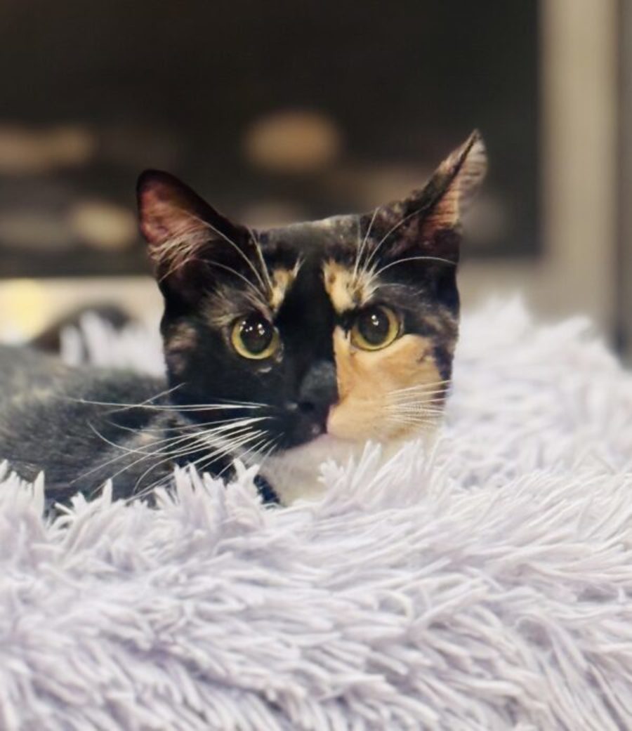Blossom is an 8-month-old kitten who came into care with her brother. She was very shy around humans at first, but since her brother was adopted, Blossom has begun to truly come out of her shell.