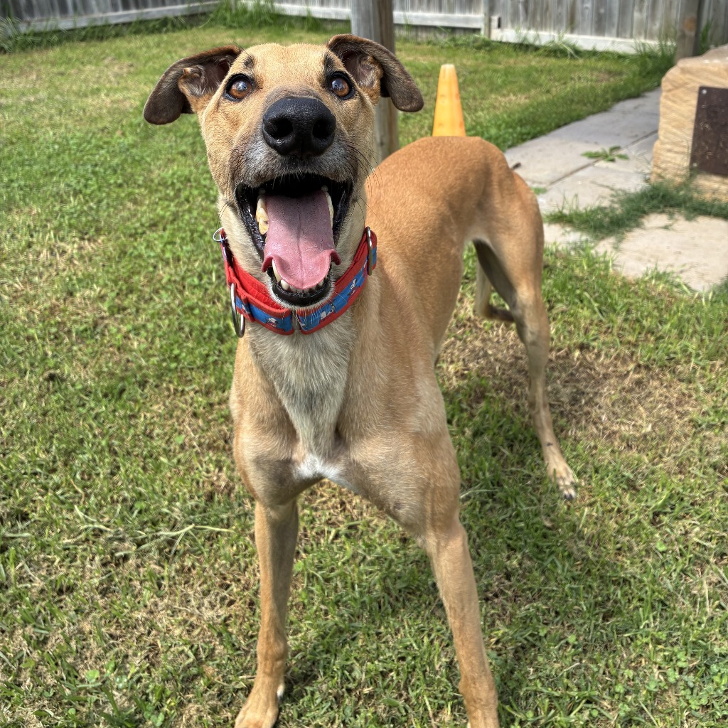 Hi, I’m Bus! I’m a 3-year-old large fawn boy. I'm a gentle giant with a soft heart, and trust me, you’ll want to hop on board.
