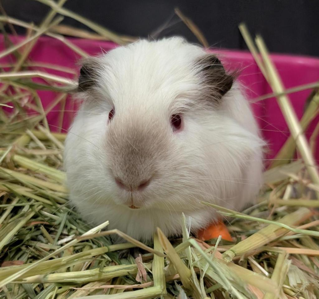 Say hello to Winno, a lively and social guinea pig with a big personality! Winno is interactive and playful with other guinea pigs, and he really comes out of his shell around his own kind. He also enjoys engaging with people, often coming to the front of his pen to say hello and check out what's going on, but much like other prey species requires gentle handling and slow and consent based interactions.