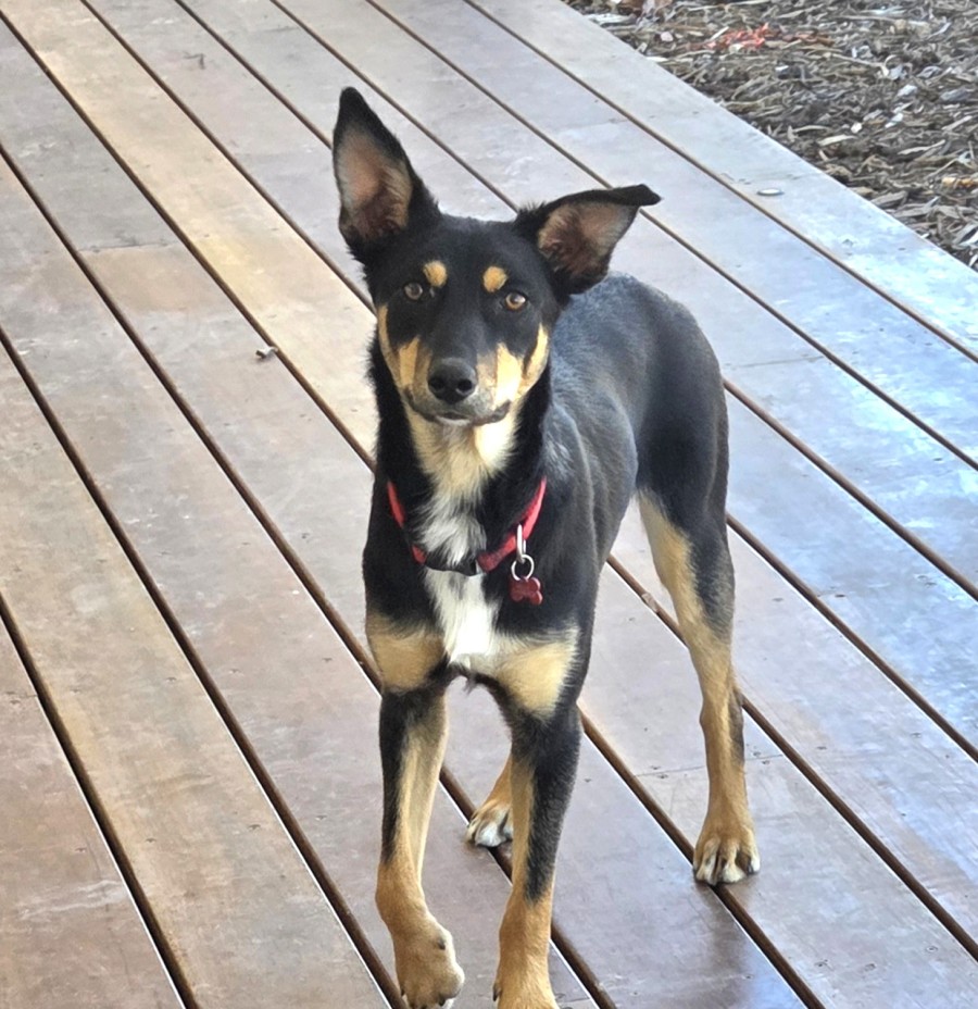 I happily settled into my foster home quickly and immediately became part of the Kelpie pack. I love catching a ball and playing with my new friends. I am happy around small humans and have played with other dogs at friends' homes. I enjoy travelling in the car, and I am good around Jake the Cat, chickens, alpacas, and sheep.