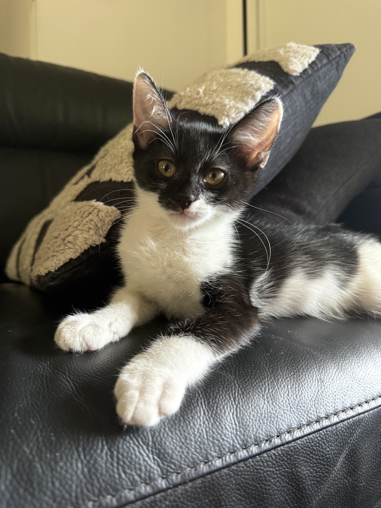 Toe Beans is such a funny, goofy little kitten who will lighten up the life of his new family. Beans loves to run and play, carry toys around and climb onto anything he can. He's a big foodie so you'll hear his tiny singing voice take the stage when it's meal time!