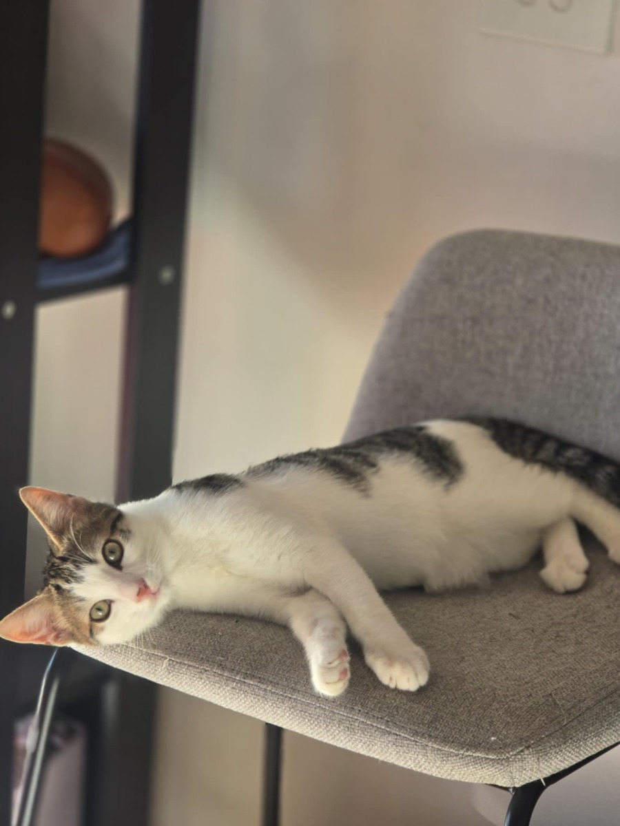Meowcolm is an indoor cat who thrives in an environment filled with love and warmth. When he's not curled up for a cozy nap, he explores his surroundings with curiosity and excitement. An ideal home for Meowcolm would be one that offers him opportunities to stay stimulated and engaged, as he delights in discovering the wonders around him.