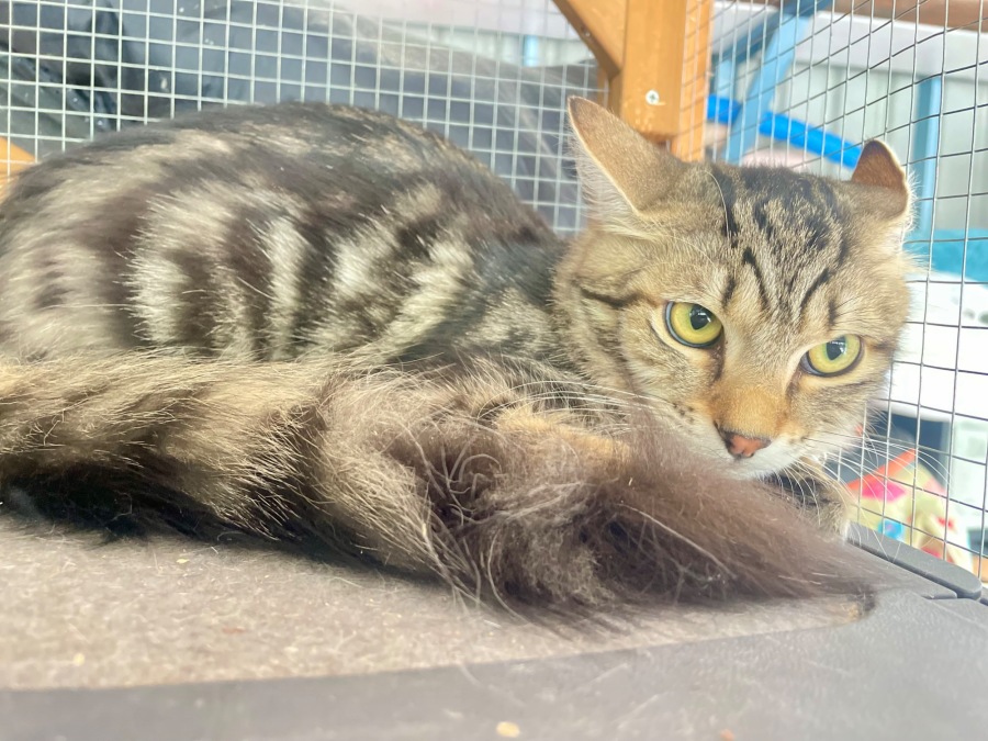 I am a Domestic Medium Haired Cat. Most people say I am very pretty with my long silky fur and beautiful tabby markings. I mostly care for myself cleaning wise, my foster carer hasn’t needed to brush me so far.