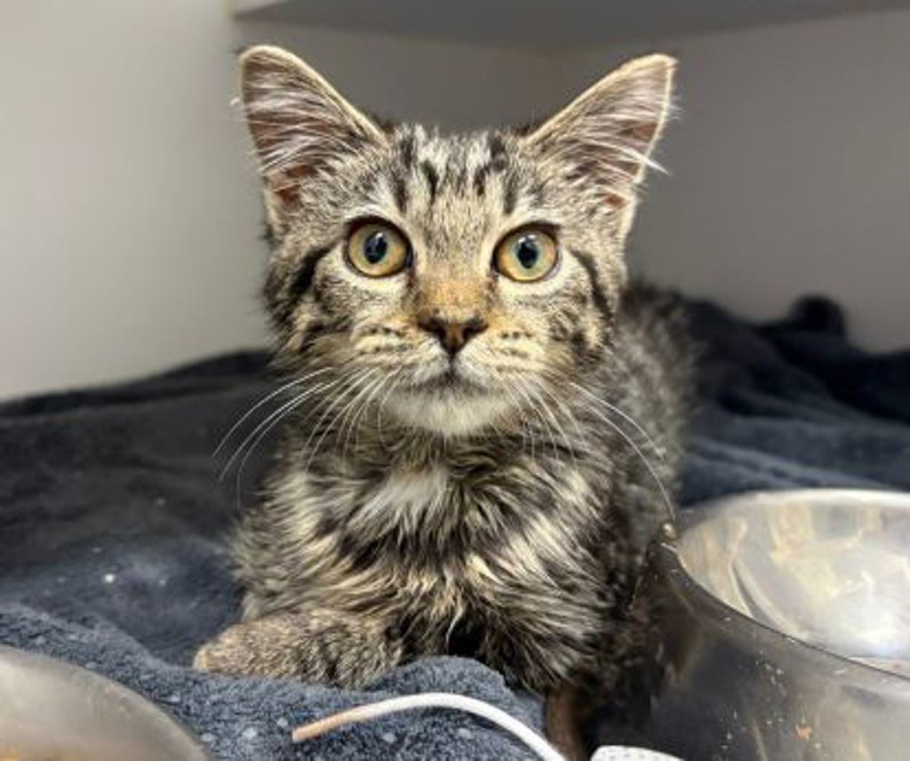 I'm a 3-month-old kitten with a scruffy little look and a heart that's much bigger than I am.