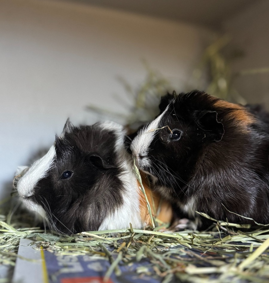 • Lots of delicious veggies, fruit, hay, grass & pellets to munch on