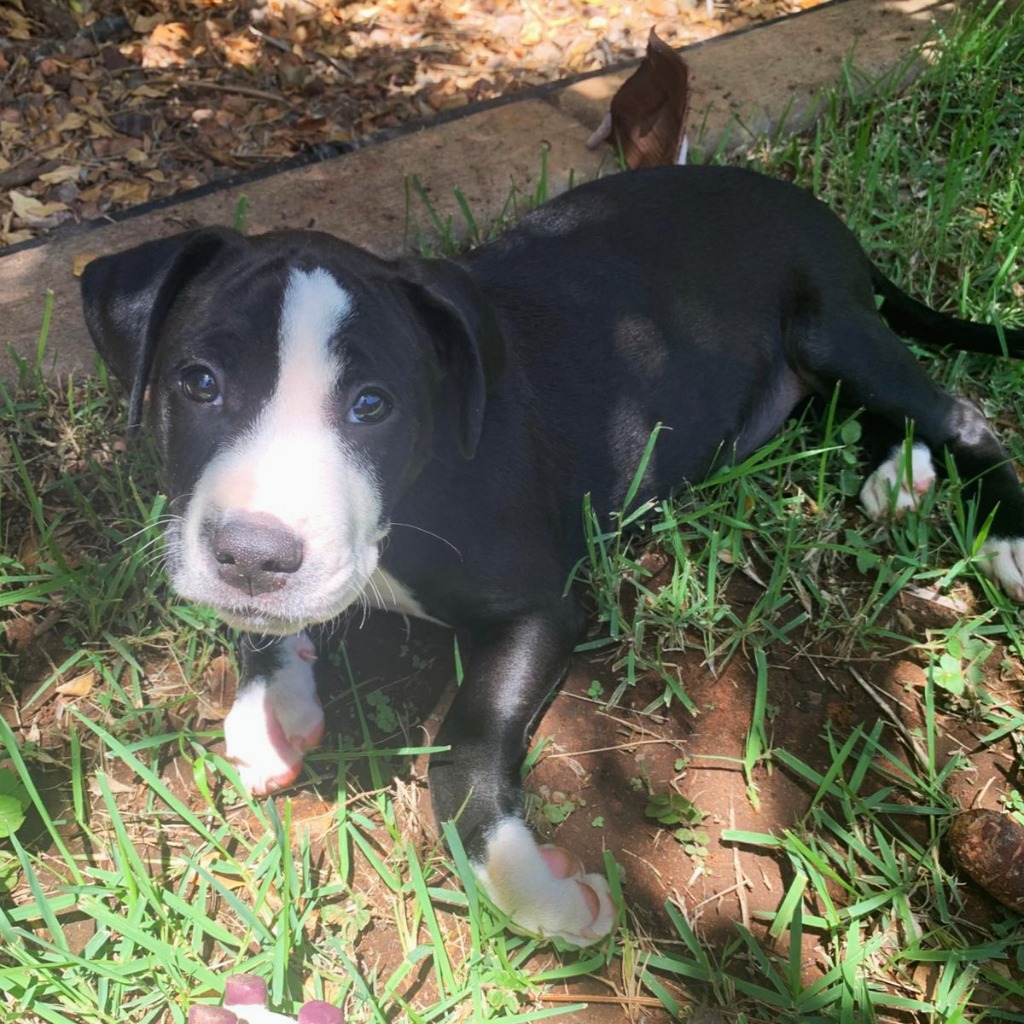 * Likely a mix of American Bulldog, Staffy, Shar Pei & Bull Mastiff