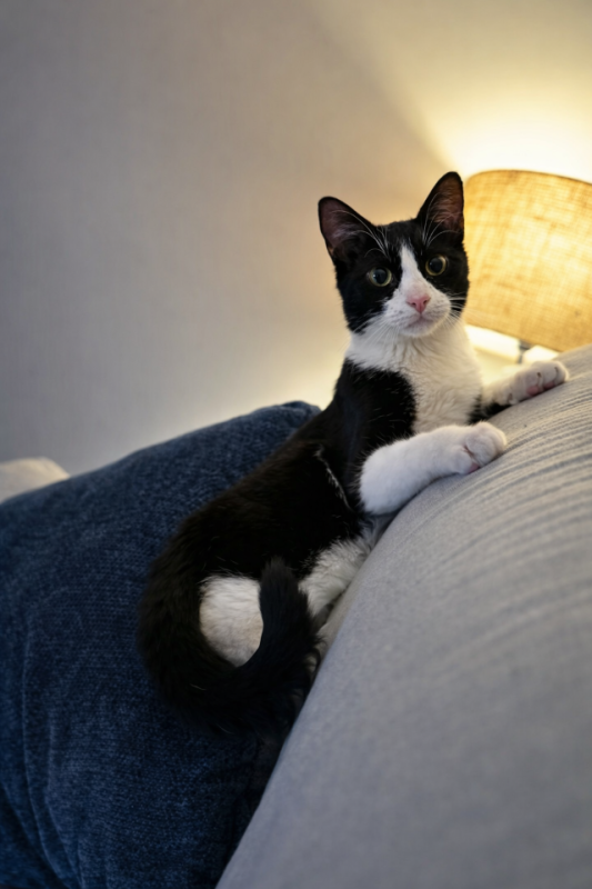 One of Gyomei’s most charming traits is that he marches when he walks, lifting his paws with purpose as he explores—an endearing habit that perfectly matches his brave spirit. A true cuddle bug at heart, Gyomei loves close contact and reassurance from his people.