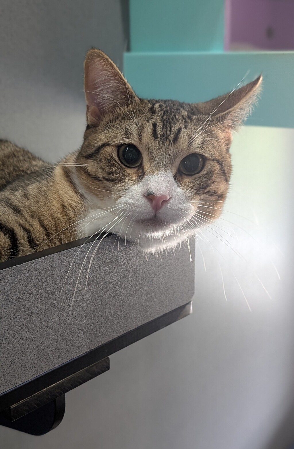 I love spending my days lounging around and getting cuddles from anyone who walks by. I'm known for my friendly demeanor and sweet nature. I arrived here with my brother from the pound as my previous owner could not look after us anymore, and together, we make a great team. I would love to stay with my brother to bully him for the rest f our lives but would be okay seperated as well. If you're looking for a cuddly companion who will always be there to greet you with a purr and a nuzzle, I'm your cat! Apply online today!
