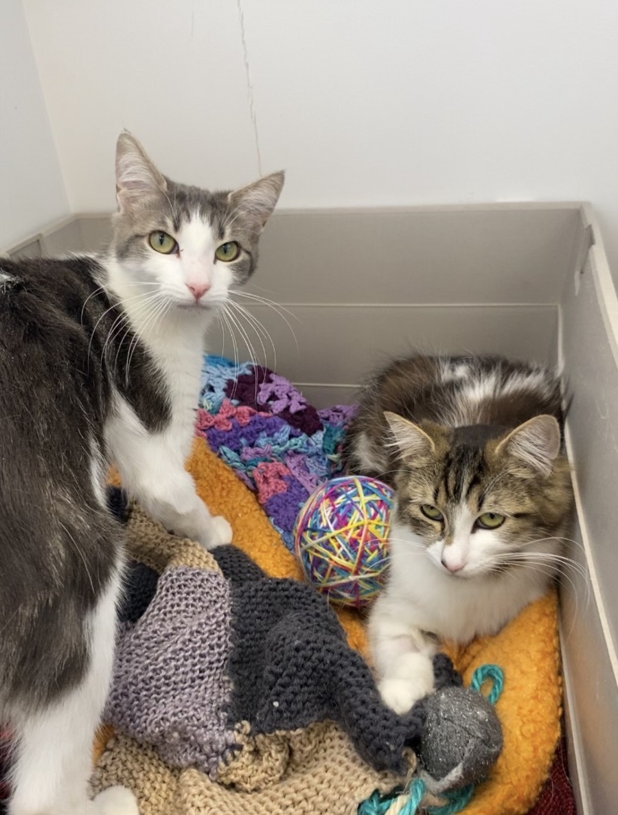 Meet Tessalyn and Cordelia, two delightful feline companions brimming with sweetness and love. These charming ladies are a bonded duo looking for a home they can call their own. While they may start off a little shy and take some time to adjust to new surroundings, their warm personalities soon shine through as they become smoochy and affectionate companions.